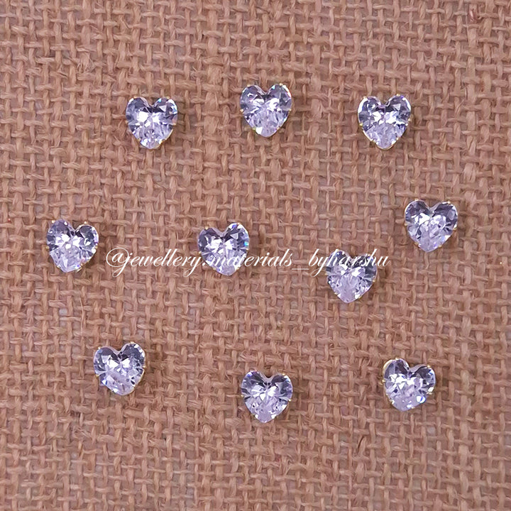 8MM Heart AD Clip Stone White with Gold Base (1 Piece)